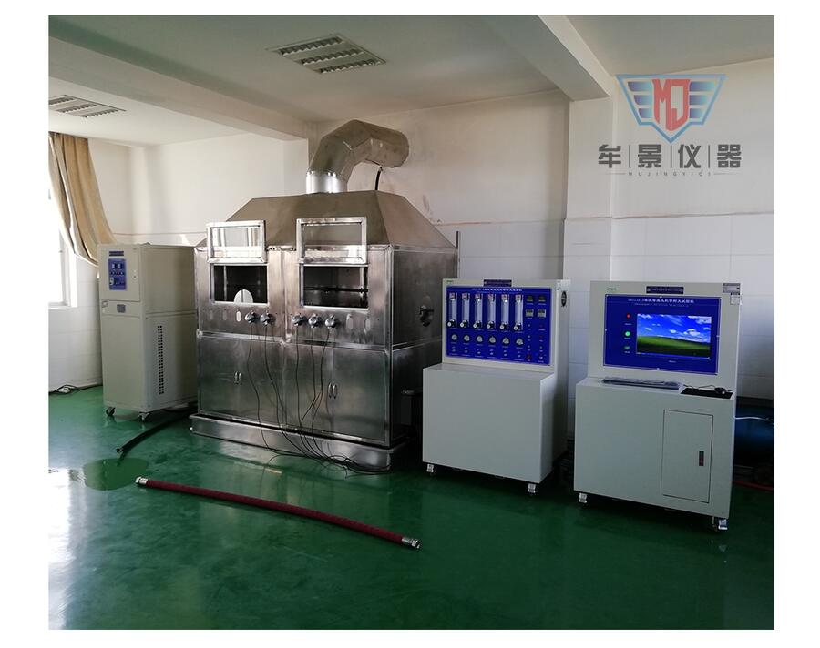 12)胶管耐火测试:水流速可控制,如果测量点2水温大于85度,水泵转速需提高,如果持续大于85度10秒钟,系统自动切断火焰燃烧装置。