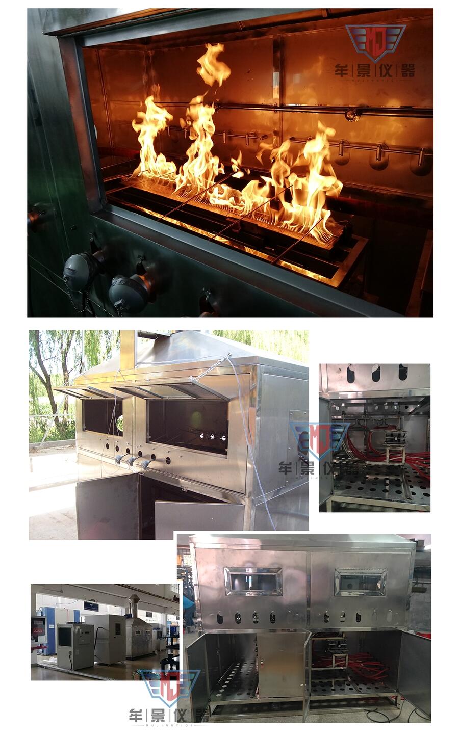 16)试验燃烧箱容积(mm):宽╳深╳高: 2000 ╳ 1150 ╳ 1650(加抽风系统总高约3500)。也可按客户要求定做。