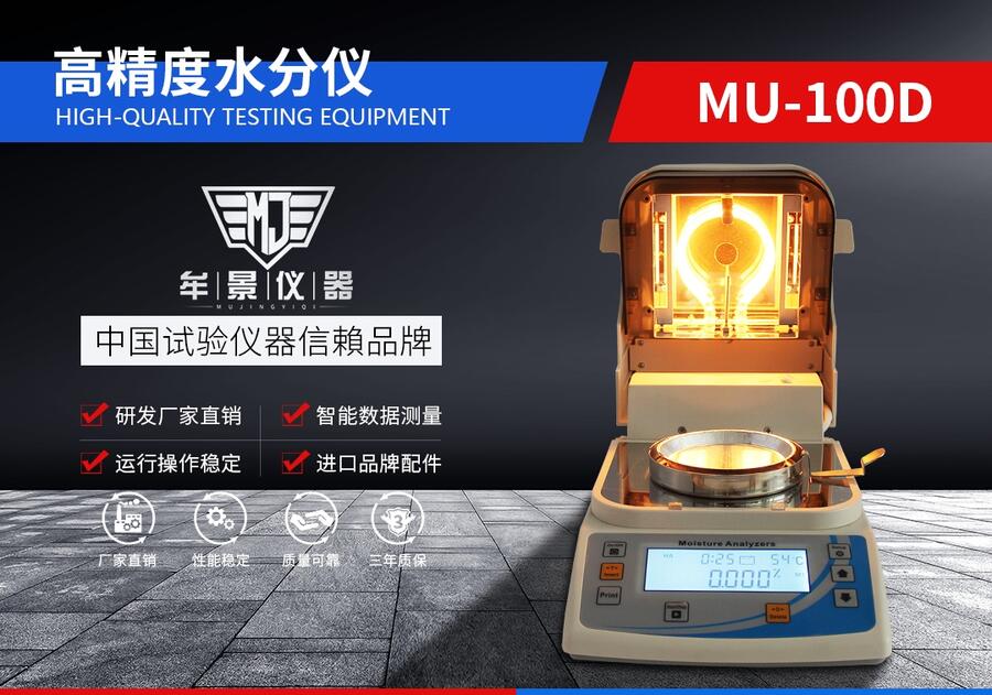 环状的卤素灯确保样品得到均匀加热,操作简便、测量准确。卤素水分测定仪在测量样品重量的同时,仪器采用环形管卤素加热方式,快速干燥样品,在干燥过程中,水分仪持续测量并即时显示样品丢失的水分含量%,干燥程序完成后,最终测定的水分含量值被锁定显示。与国际烘箱加热法相比,卤素加热可以在高温下将样品均匀地快速干燥,样品表面不易受损,其检测结果与国标烘箱法具有良好的一致性,具有可替代性,且检测效率远远高于烘箱法。智能化操作,一般样品只需几分钟即可完成测定。该仪器操作简单,测试准确,显示部分采用液晶显示屏-使屏幕更加清晰明亮,示值清晰可见,分别可显示水分值,样品初值,终值,测定时间,温度初值,最终值等数据,并具有与计算机,打印机连接功能、符合GLP规范的打印数据输出。