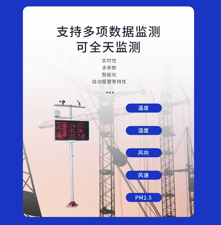 QY-3000G2型建筑工地扬尘噪声监测系统适用于建筑工地、拆迁工地、混凝土搅拌站、建筑材料生产基地、矿石开采场等与建筑行业息息相关的区域的扬尘监测,可以帮助人们及时、准确地监测会威胁到人类健康的扬尘污染和噪声污染。该系统是上述区域防治扬尘污染过程中不可或缺的重要设备之一,可以为确保施工或生产过程中排放的扬尘和产生的噪声不超标提供完整的数据信息,以及做出及时的预警提醒。