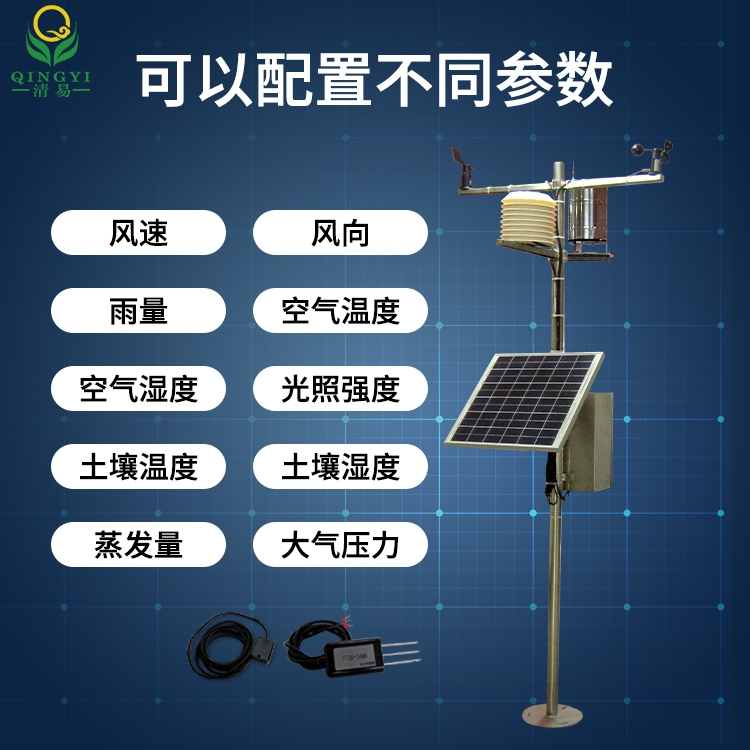 小型气象站用于对风速、风向、雨量、空气温度、空气湿度、太阳辐射、光照强度、土壤温度、土壤湿度、蒸发量、大气压力等气象要素进行现场监测。既可以通过无线通讯将数据传送至云平台,又可以通过配套的数据采集通讯线与计算机进行连接,将数据传输到计算机数据库中,用于统计分析和处理。