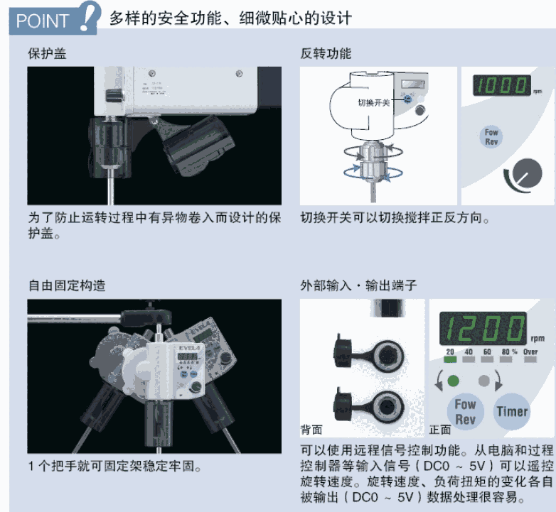 1、 zui大扭矩内的负荷通过速度反馈控制保持设定旋转,zui大扭矩以上的负荷降低旋转速度持续搅拌,是一种独特的2段旋转控制。