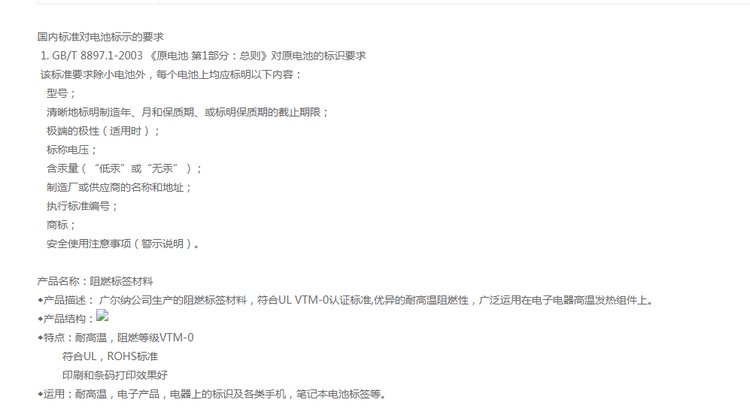 锂电池专用导气标签耐温标签PET标签阻燃材料