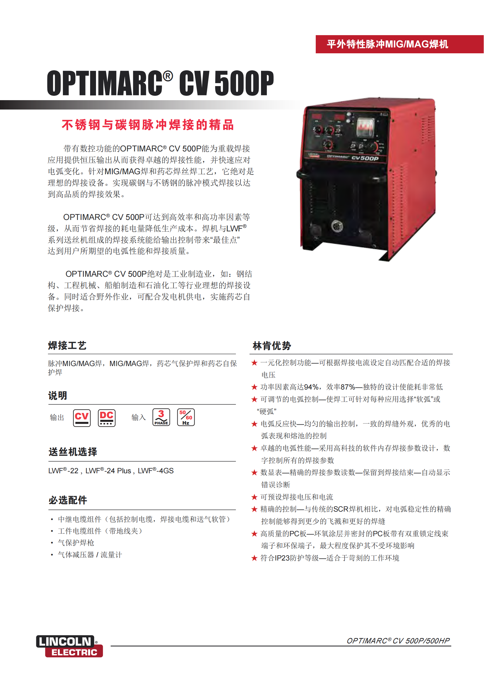 LINCOLN\/林肯焊机脉冲MIGMAG焊接OPTIMARC?CV500P