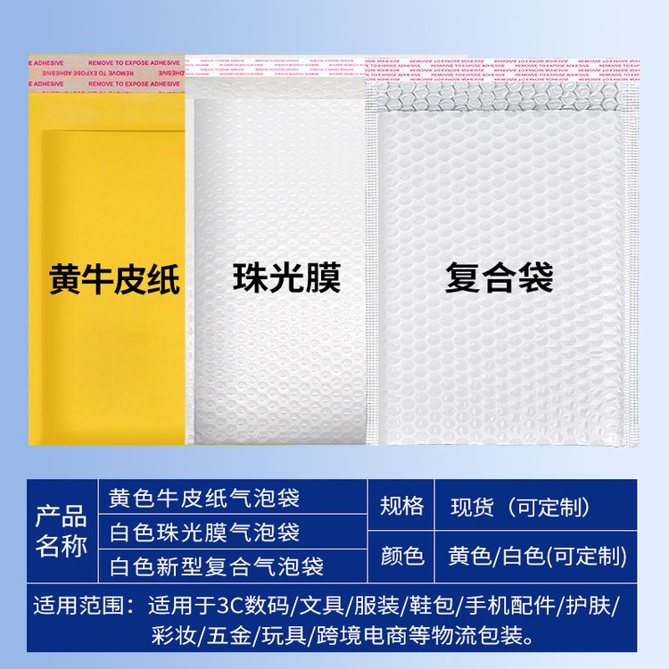 材质 | 复合珠光膜 新料气泡膜 | ||
