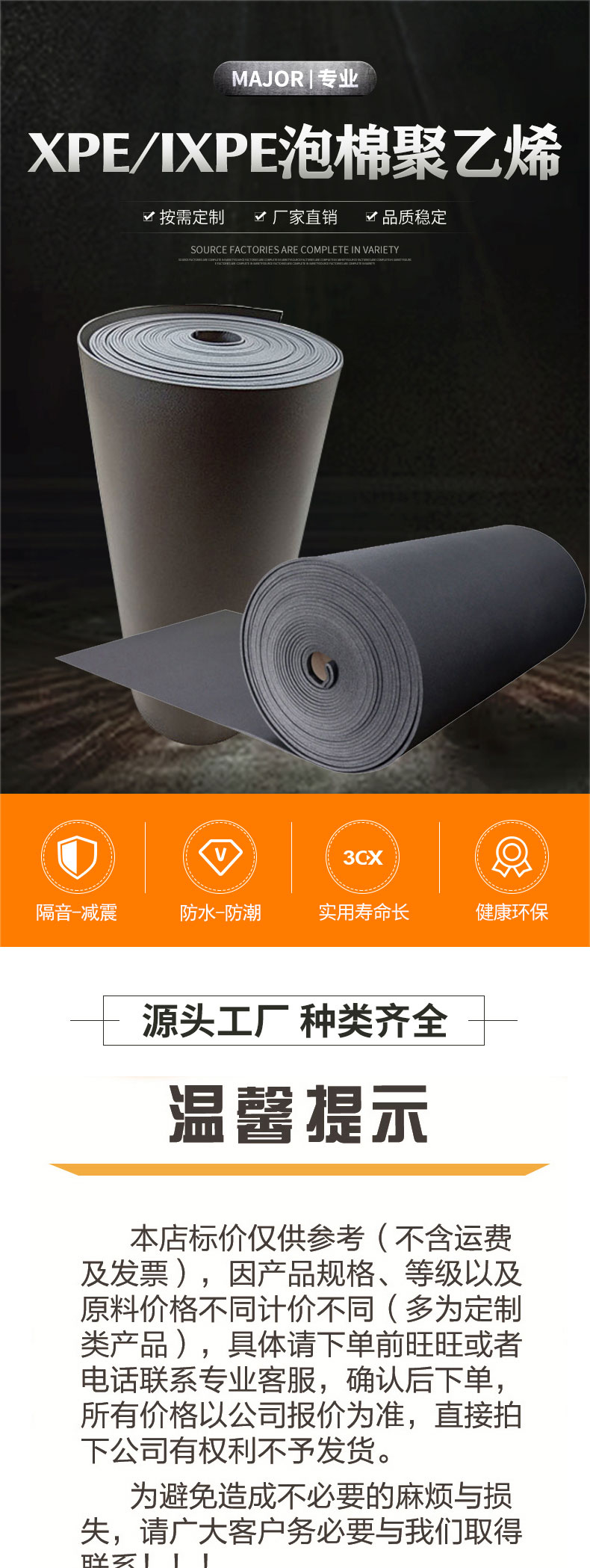 特性 | 环保无味,缓冲减震,密封防水,隔音隔热 | ||