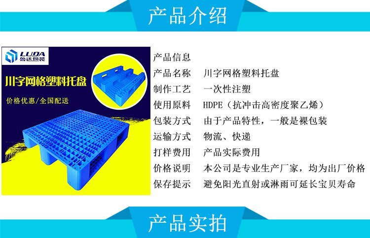 鲁达厂家多规格注塑托盘川字网格叉车仓储大型塑料托盘