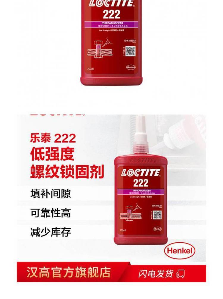 汉高乐泰LOCTITE222螺纹锁固剂厌氧胶中等强度螺纹胶螺丝胶