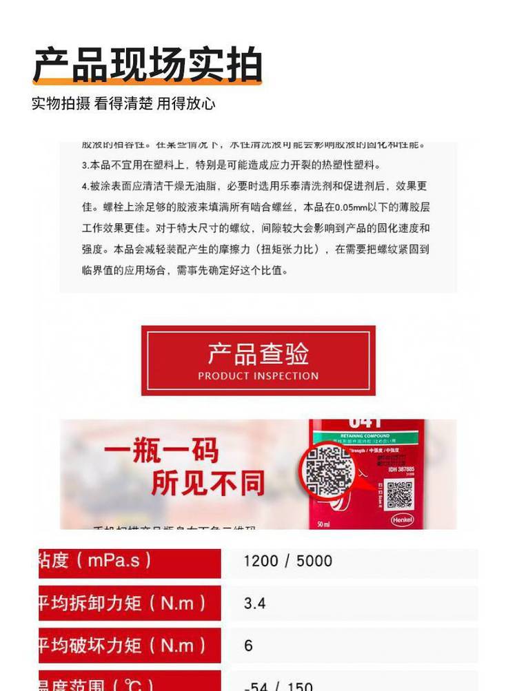 产品特性 | 低强度锁固 | ||