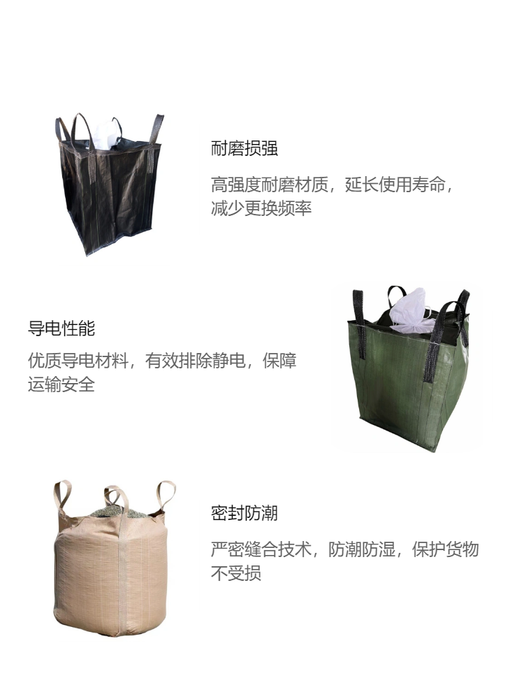 龙山区新瑞翔防水加厚物流吨袋耐腐蚀包装袋批发白袋黑吊带导电袋