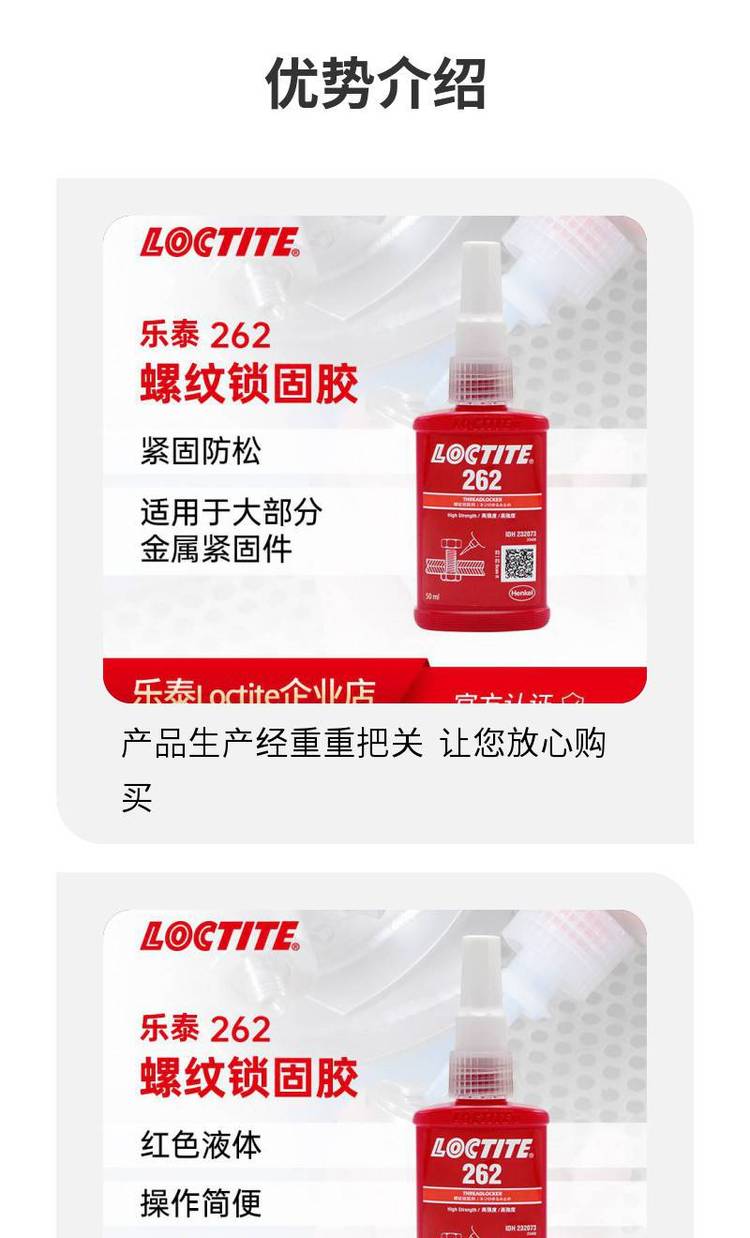 汉高262螺纹锁固剂中高强度紧固胶乐泰胶粘剂50ml