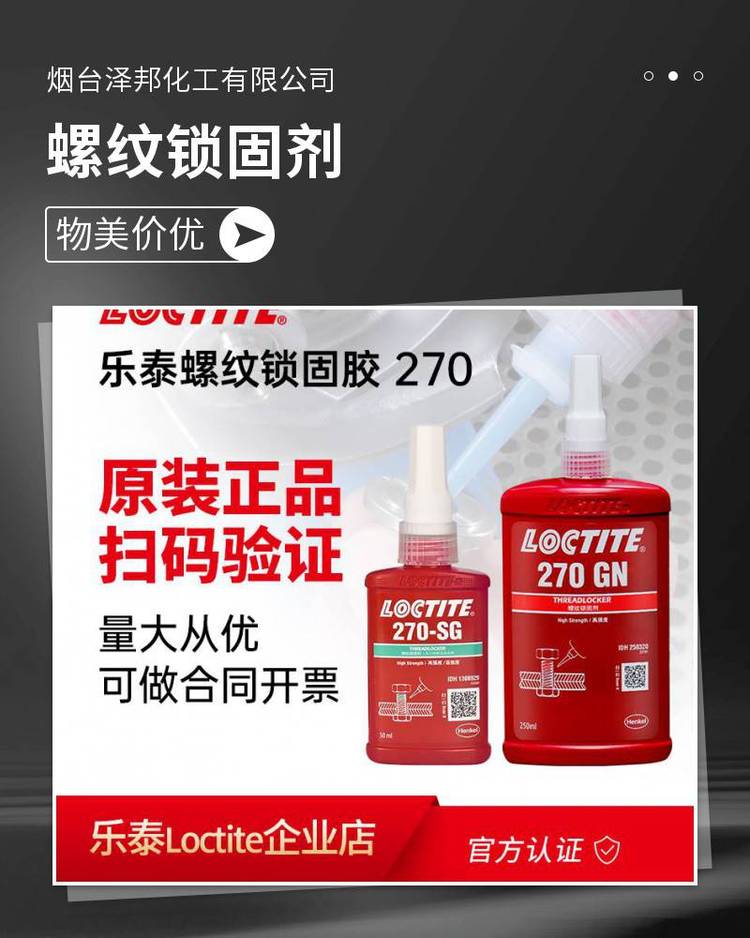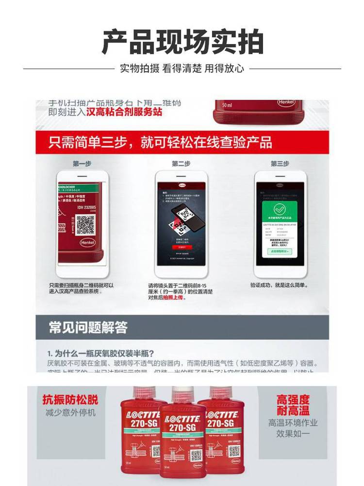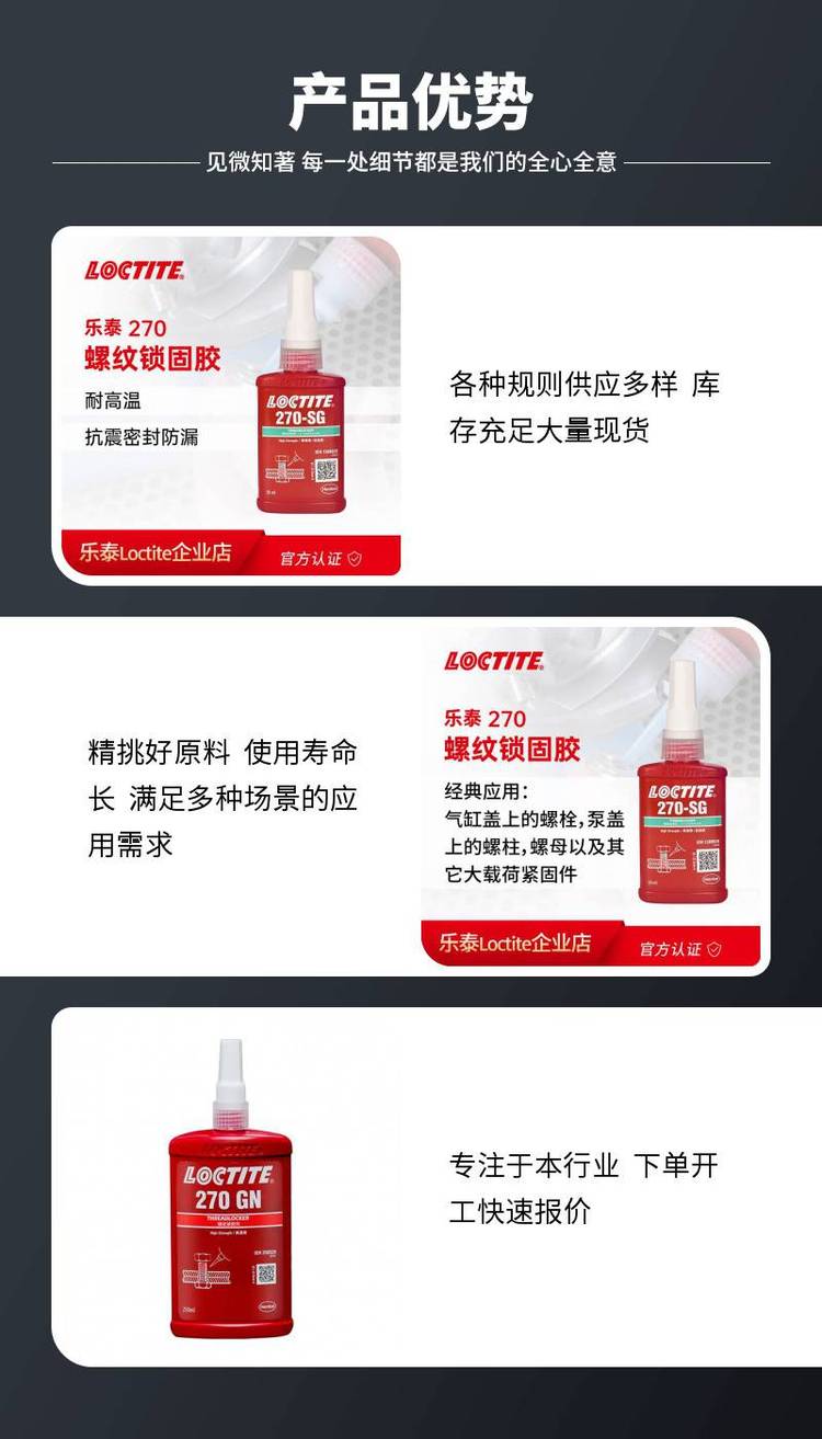 汉高乐泰LOCTITE270密封螺纹锁固紧固胶金属胶抗油脂