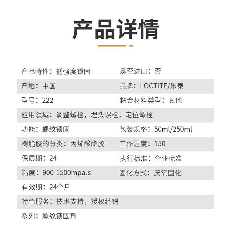 产品特性 | 低强度锁固 | ||