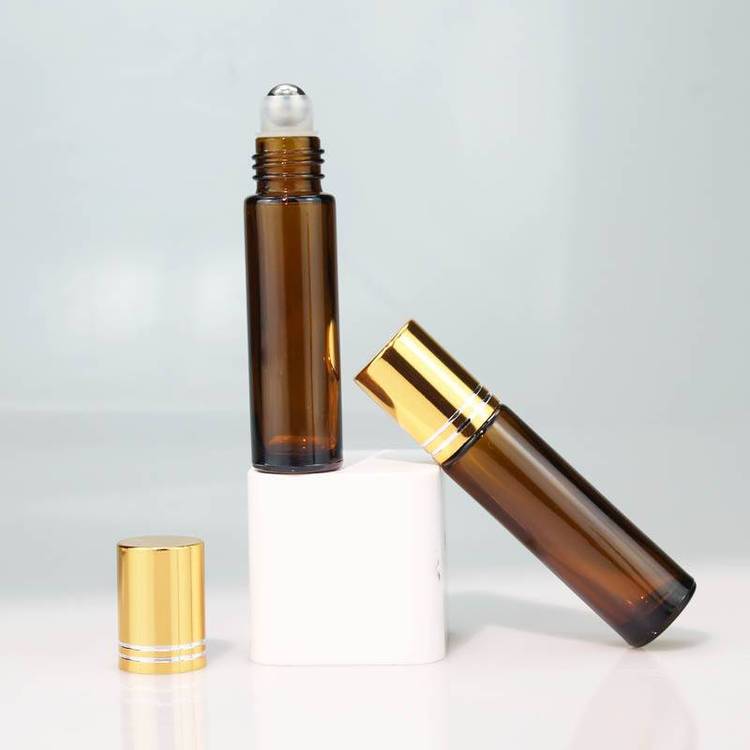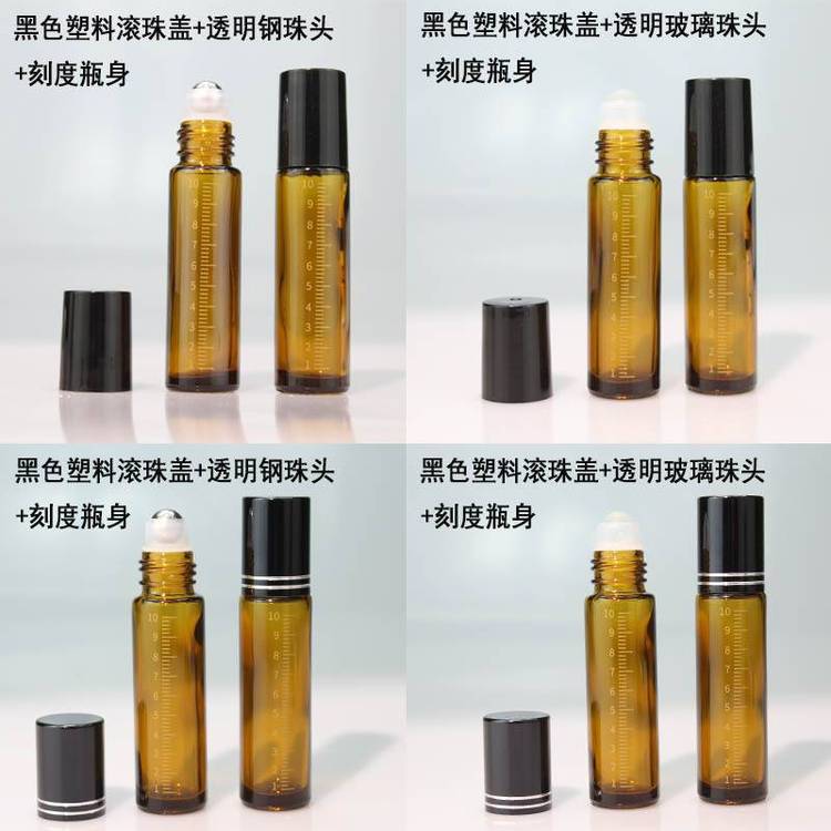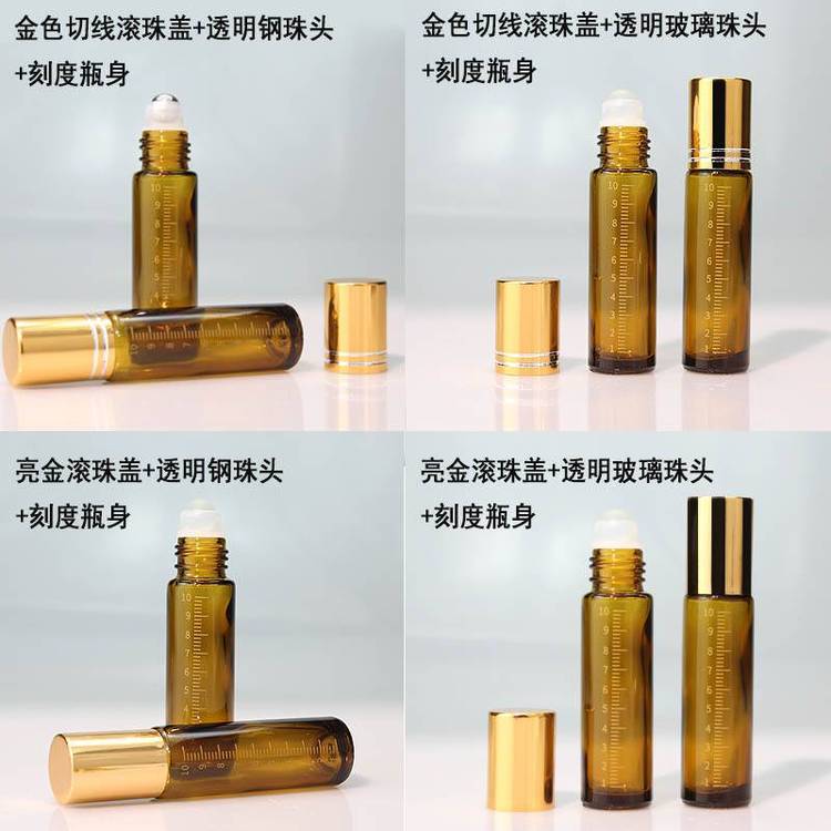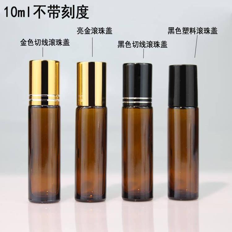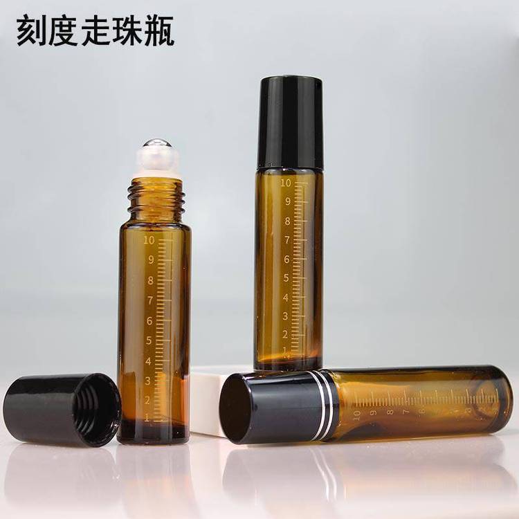 热销精油香水刻度滚珠瓶10ml茶色厚壁玻璃滚珠分装瓶刻度款风油精走珠瓶