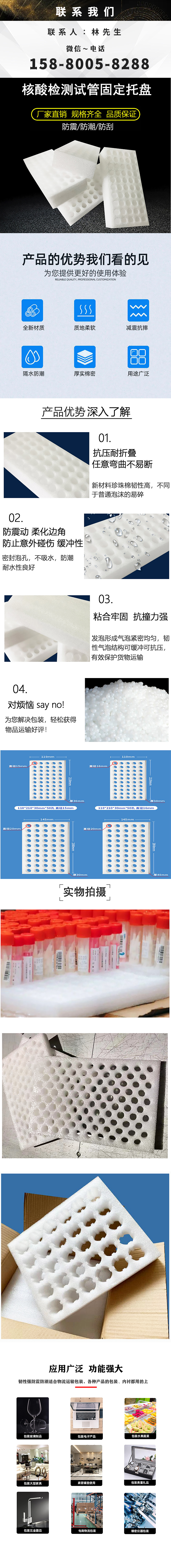 EPE珍珠棉试管托盘核酸检测采样管内托底托泡沫托盒厂家