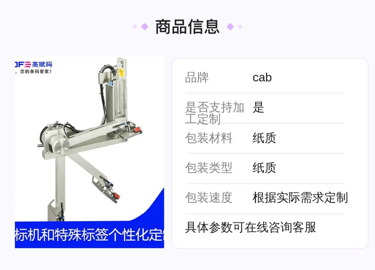 前侧贴标手臂3014/3016 CAB自动实时打印贴标机 品牌 | cab | ||