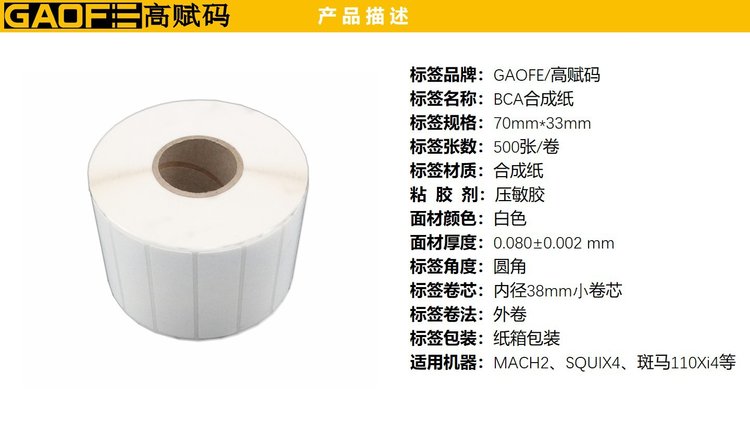 产品名称:BCA合成纸