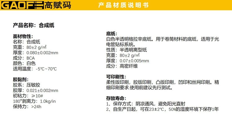 名称:80#BCA合成纸