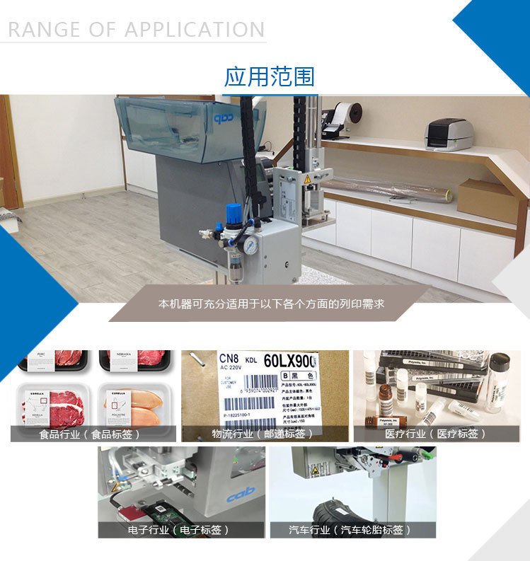 应用场所 | 食品、邮递、医疗、电子、汽车等行业 | ||