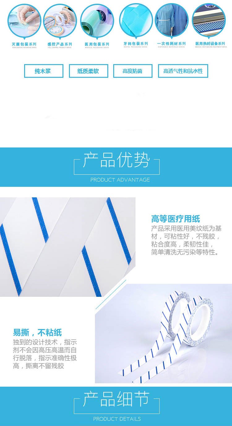 产品材质 | 以医用美纹纸为基材,将特殊热敏化学染料与显色剂及其辅料制成油墨,涂以斜形条纹或^形状作为指示剂,反面涂以压敏胶而制成 | ||