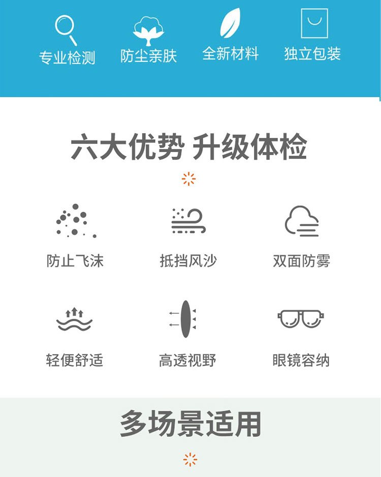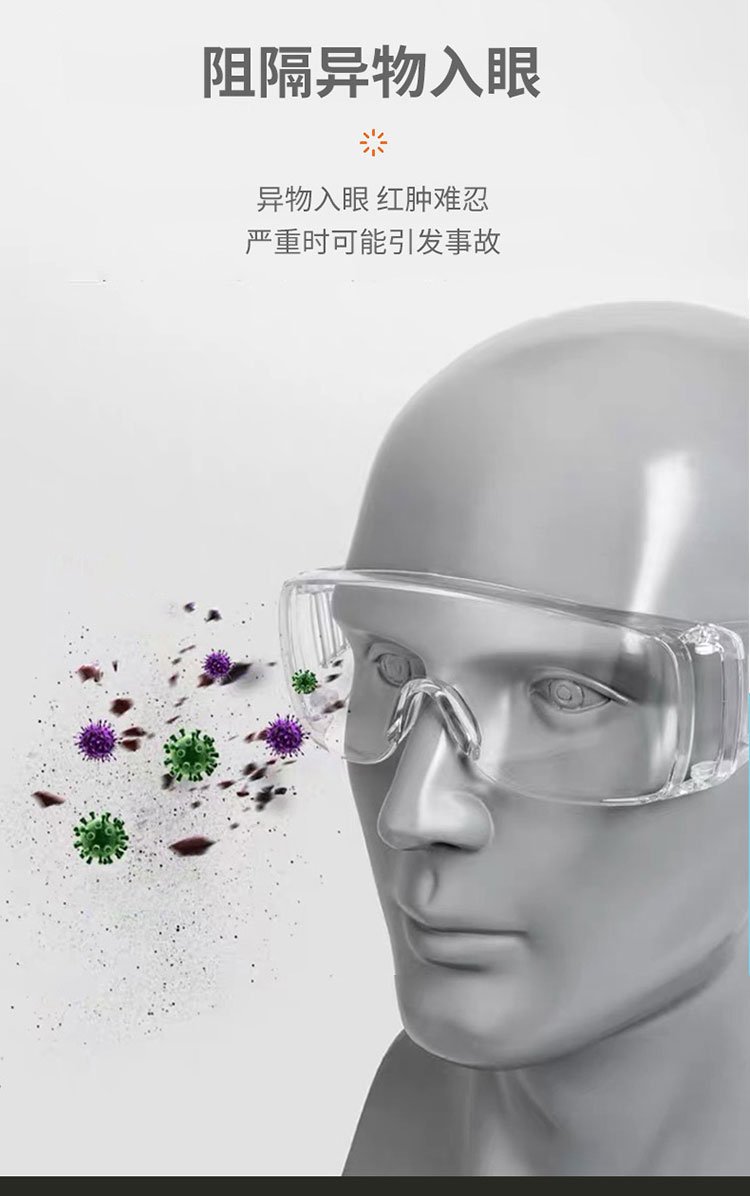 防护眼镜安全防护蓝白伸拉腿护目镜防尘防冲击防飞溅劳保眼镜骑行