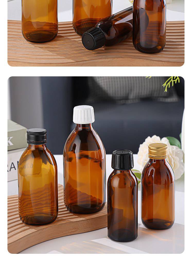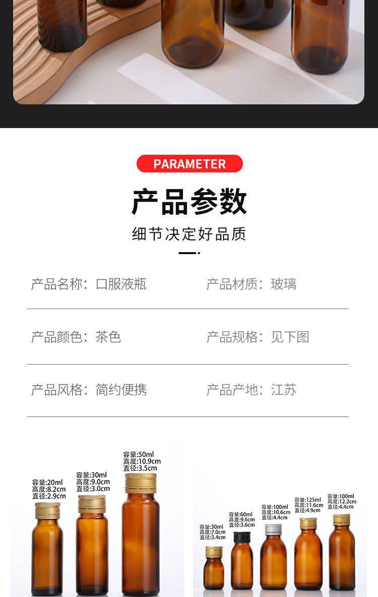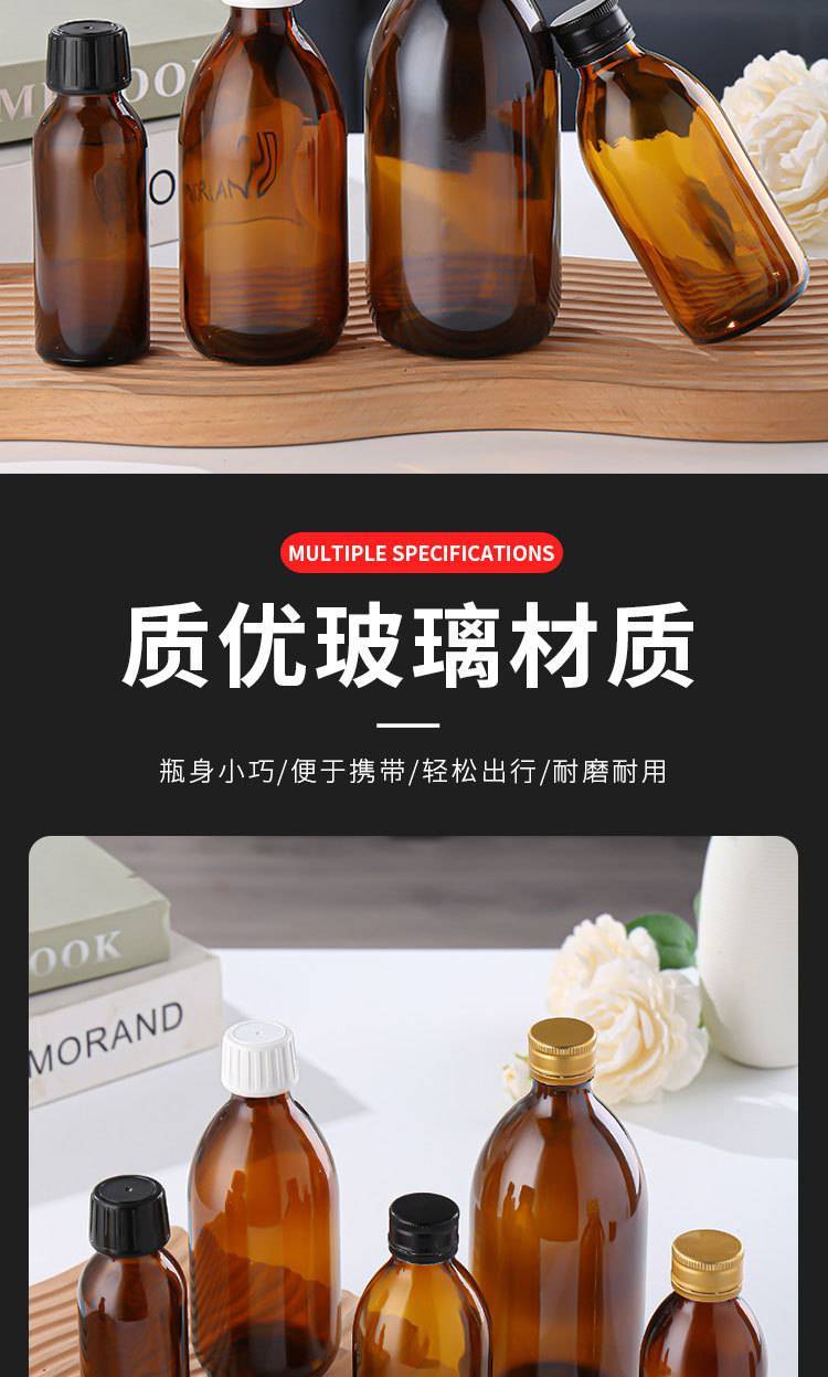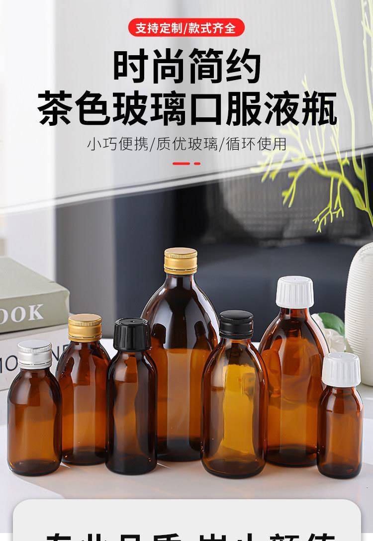 热销药用玻璃茶色棕色口服液瓶玻璃瓶30ml60ml糖浆瓶多规格现货批发加厚密封空瓶子带铝盖塑料盖