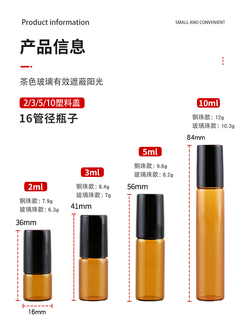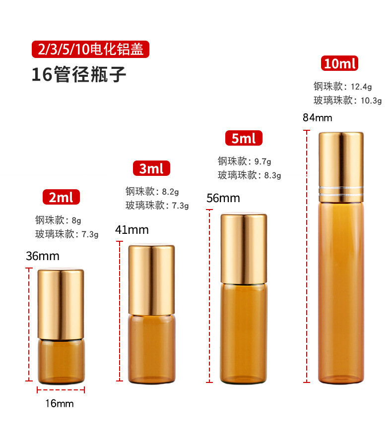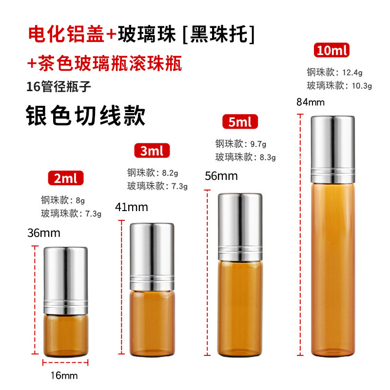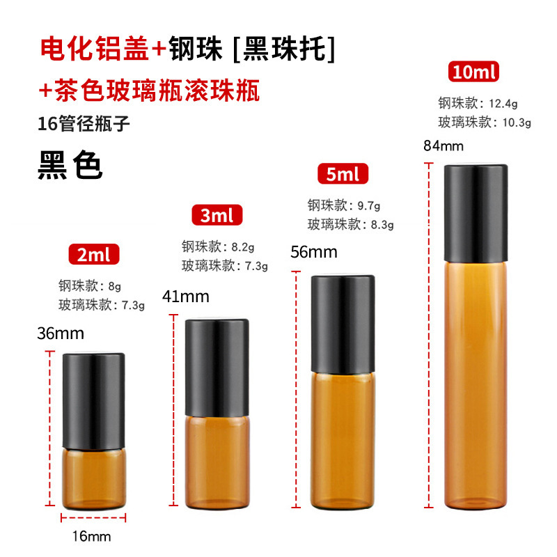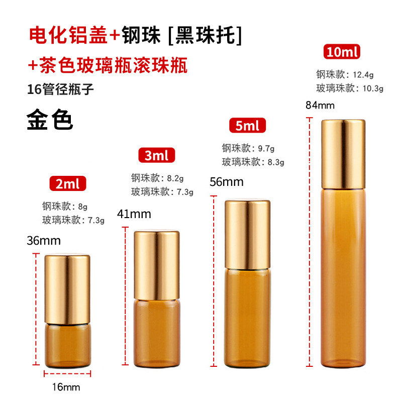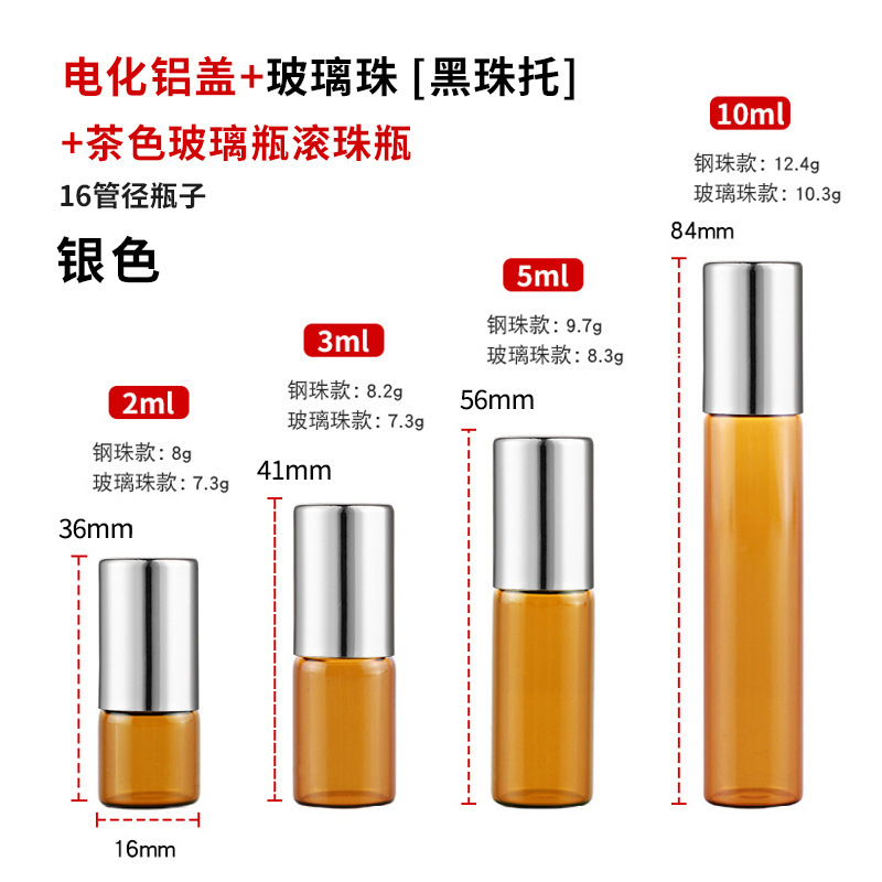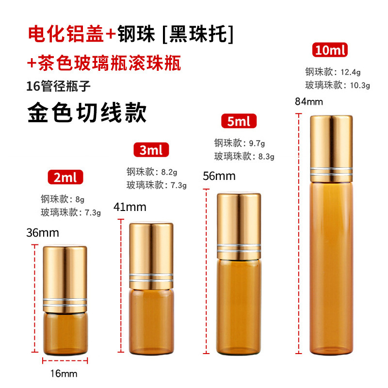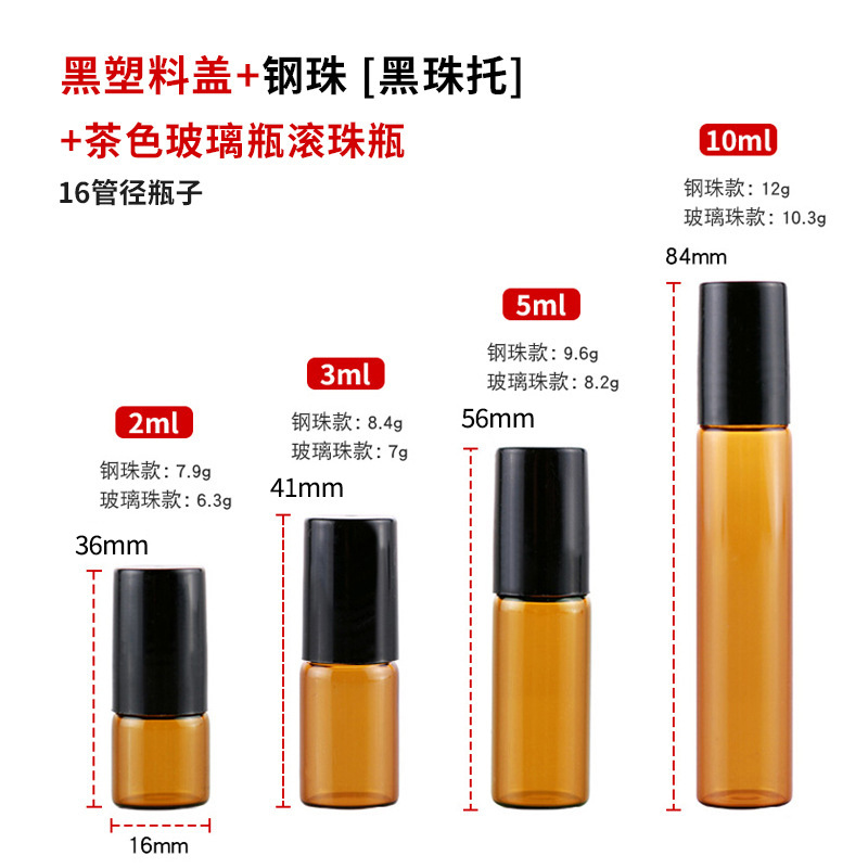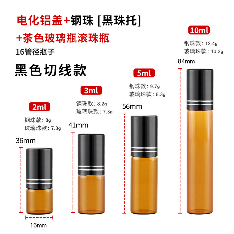 2ml化妆品走珠瓶3ml茶色玻璃瓶5ml避光滚珠瓶10ml棕色精油瓶