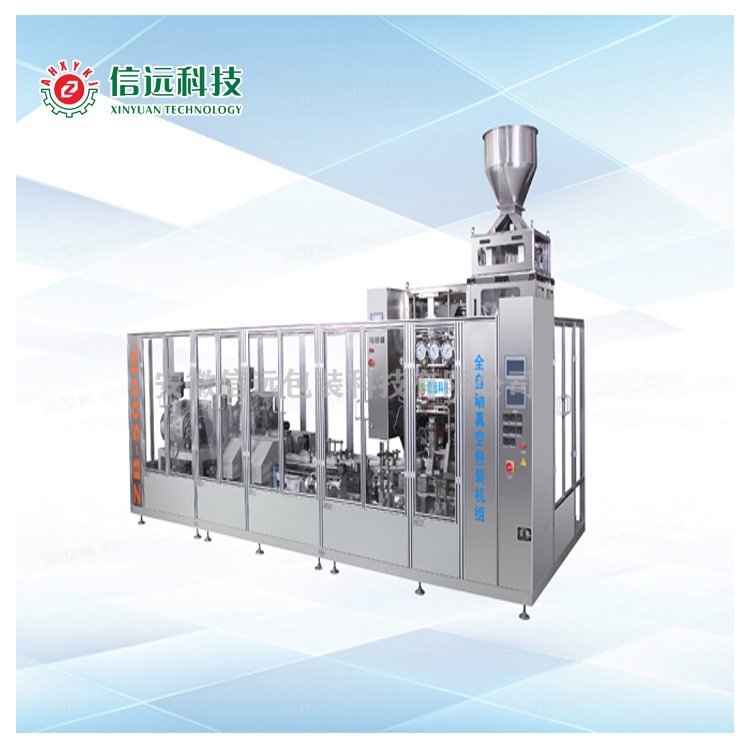 ZB-500N内抽式真空包装机可实现全自动上料、称重、制袋、填充、整形、抽真空、封口、剪袋口、成品输送于一体,将散放物料包装成为具有高附加价值的定重成型的六面体小包装。包装速度快,运行稳定。该机组广泛应用于大米杂粮等谷物类产品以及咖啡等粉料的真空包装,适合大批量生产,袋型美观,密封效果好,便于装盒、装箱或直接零售。