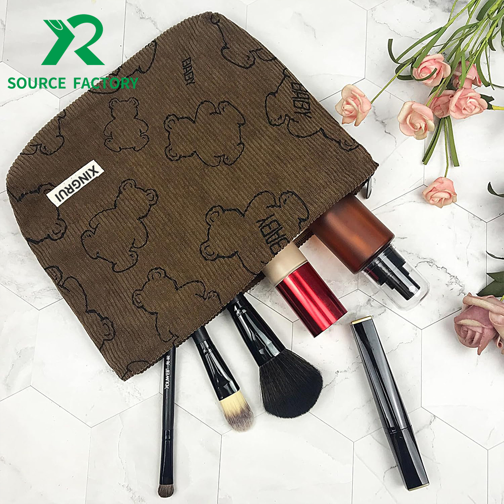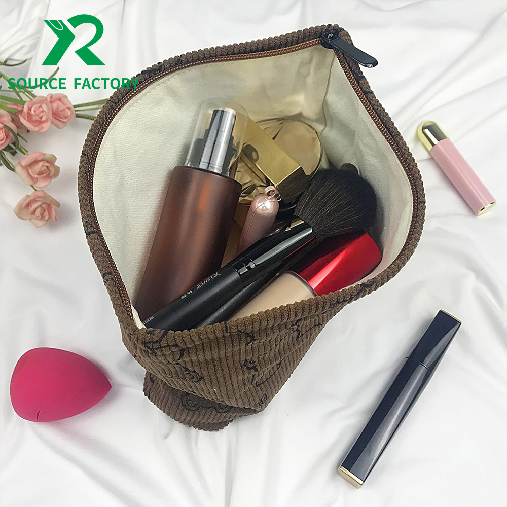 灯芯绒新款收纳袋多功能便携收纳包大容量女士化妆包学习文具袋
