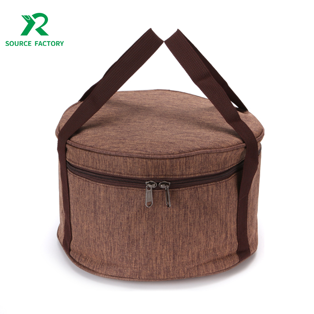 圆形午餐保温袋大容量保温包户外野营便携式收纳包简易野餐包