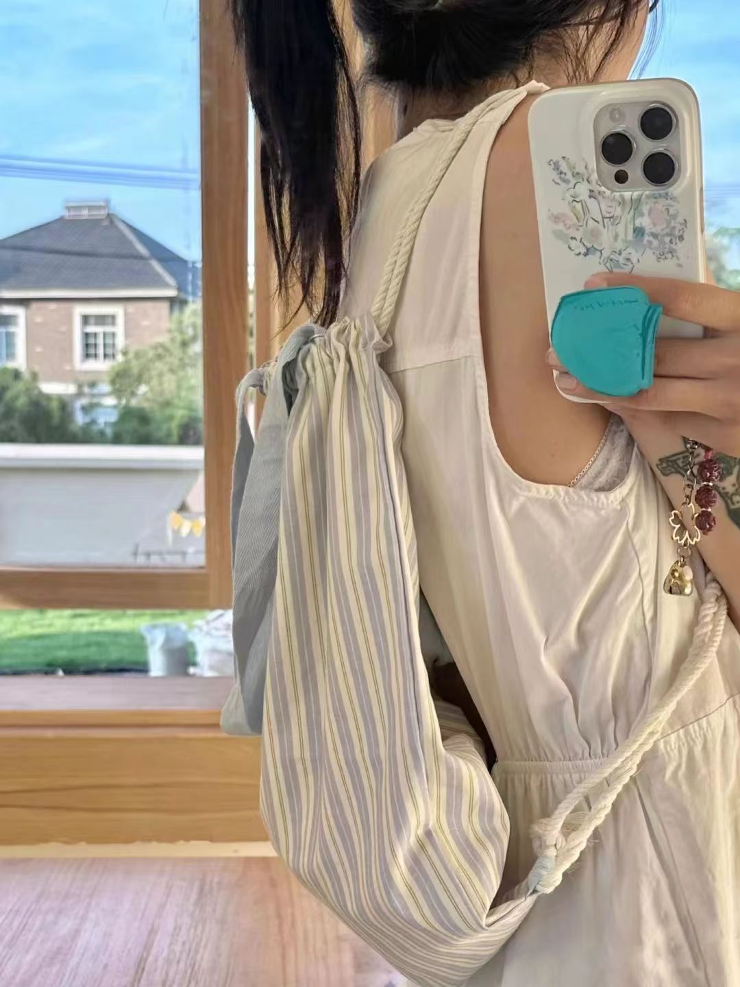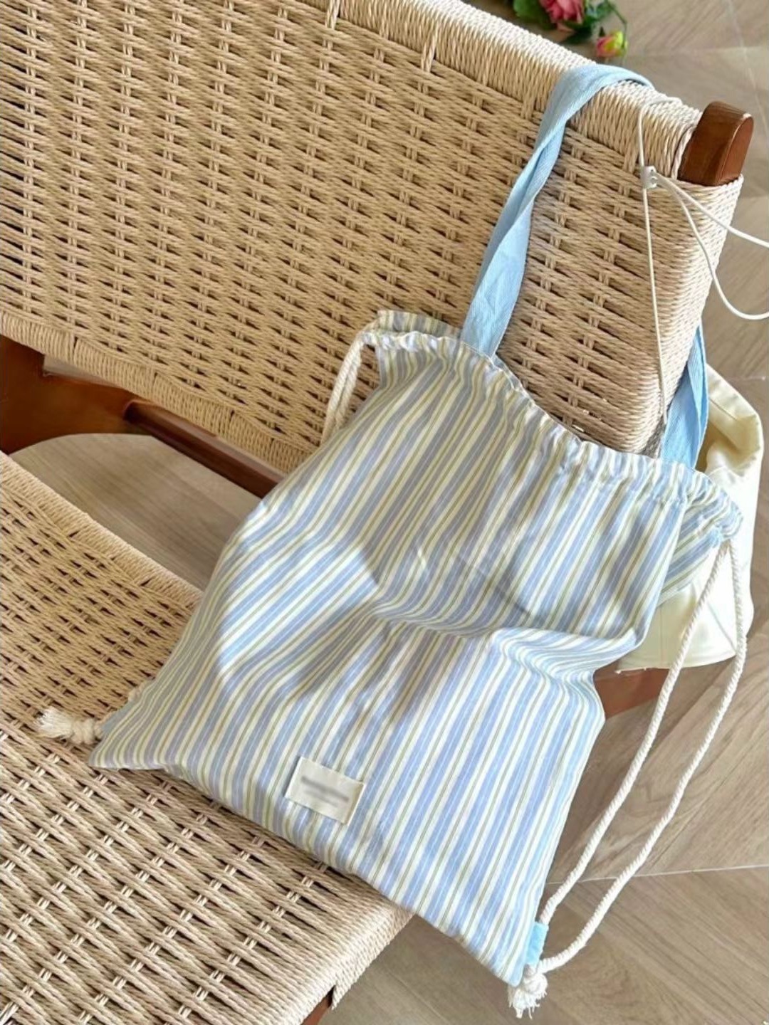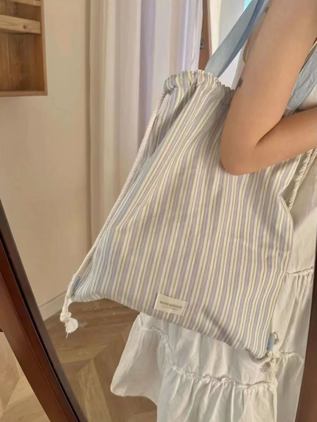 现货新款条纹撞色小清新帆布包单双肩两用通勤春夏外出游玩批发厂