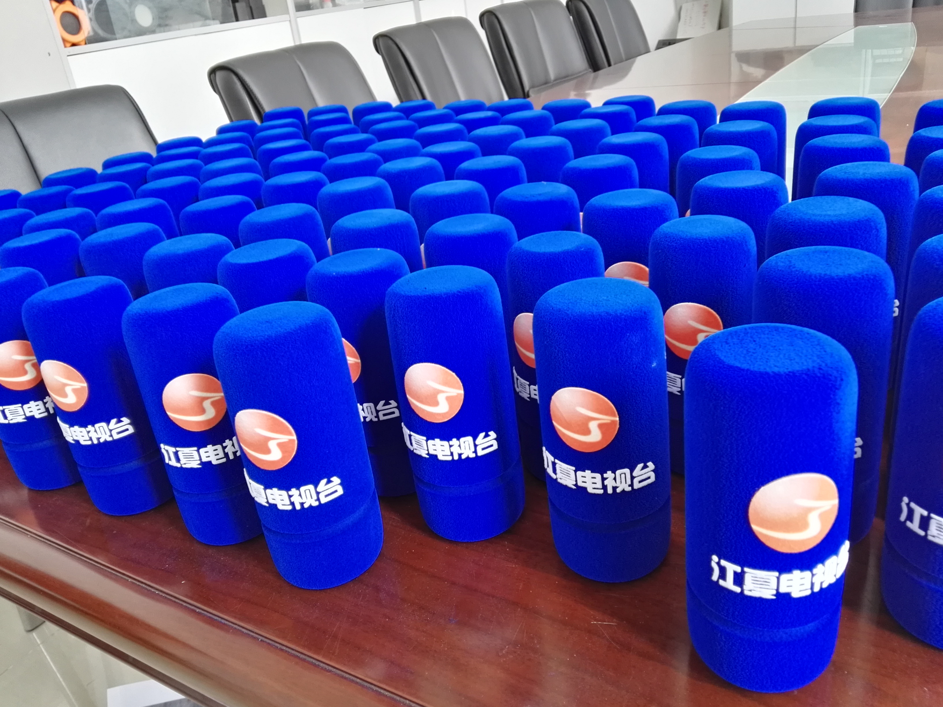 专业生产加工各种麦克风台标海绵/彩色logo话筒套,