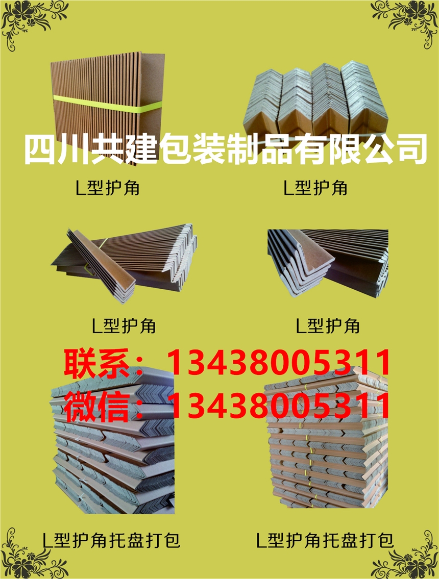 纸护角由牛皮纸、多层纱管纸和水溶胶叠压制成,结构牢固,使用中可以抗挤压和撞击,并可再循环利用,对环境无害。纸护角具有抗压、防潮、重量轻、体积小、价格便等特点。广泛应用在出口包装中,可在搬运、入库和运输过程中,对产品的边缘和角落进行有效的保护,并可加固托盘上的产品。广泛应用于冶金、造纸、耐火、纸箱内衬、电子电器、化纤、建材、地板等方面。