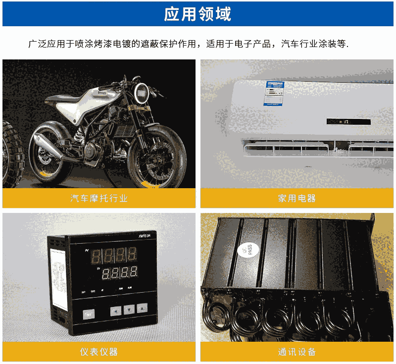 本产品大量应用于防焊保护,变压器线圈高温绝缘捆扎;电容器绝缘材质,PCB板金手指高温喷涂遮蔽保护,手机锂电池制造捆扎。用途:保护金手指公