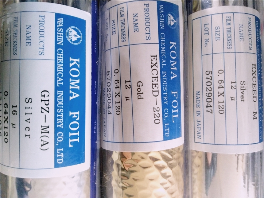 乐饰科技专业代理及经销日本KOMA、日本KATANI、日本中井NAKAI、日本尾池OIKE、美国CFC、美国皇冠CROWN 、日本丽光REIKO、日本东洋TORAY、英国API、德国库尔兹KURZ、韩国ITW、韩国KOLON、台湾光群K.LASER、台湾NANYA等多品牌烫金纸(电化铝)。以及销售烫金版,烫金轮,切箔机等烫金辅助材料。