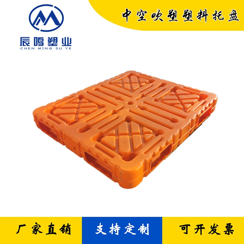 双面塑料托盘优点(1)、重量轻而且结实--以PP或HDPE为原料,添加着色剂及抗老化剂,采用注塑成型工艺一次成型。 (2)、卫生--符合卫生检验要求。 (3)、 物理性能--具有优良的物理机械性能和耐候性及耐化学腐蚀性、洗涤、杀菌容易、不霉变。 (4)、经济——质量及尺寸稳定性好,使用寿命长,不需修理。 (5)、安全——无钉、无刺,故不会损伤物品及操作人员,空间转移安全性好,磨擦不起火花,适合易燃品的运输。 (6)、节省大量资源——全部用优质塑料为原料,为国家节省大量木材资源。 (7)、防滑——产品承载面加有橡胶防滑垫,不必担心货物滑动。 (8)、承载能力MAX——双面托盘:动载1.5T、静载4.0-6.0T、货架承载1.0T;单面托盘:动载1.2T、静载3.0-4.0T、货架承载0.8-1.0T。