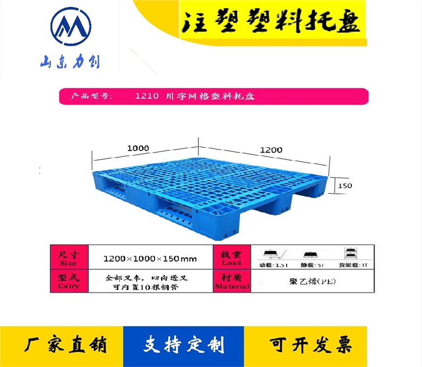 我公司专业生产塑料托盘、塑料垫板、塑料卡板、塑料栈板、塑料周转箱塑料周转箩等工业塑料制品,和木托盘,木包装箱的生产。塑料托盘相对于钢制托盘和木制托盘具有轻、易于搬运、无钉刺整体美观、高回收价值等优势。方便手动液压叉车和叉车等搬运工具作业,对提高机械化装运和保证仓储质量起着重要作用,特别对贮运软质纸箱时可大大减少破损率,和国际要求接轨搬运仓储的好助手,与钢托盘,木托盘相比具有质轻、平稳,美观整体性好,无钉无刺,无毒无味。耐酸碱,不腐烂,不易被细菌繁殖,易清洗消毒,不助燃,无静电,无火花,防滑溜,回收价值高等特点,使用寿命是木托盘的8-9倍,现已广泛应用化工,石化,食品,啤酒/饮料,水产品,医药,烟草,饲料,制衣,制鞋,电子电器,玻璃,港口,码头等诸多行业是现代化运输的包装仓库以及产品出口的重要必备器材工具。 。塑料托盘是现代化搬运、仓储、物流**为理想的工具。全国发货目前拥有九脚网格 九脚平板 田字网格 田字平板 川字网格 川字平板双面网格 双面焊接 啤酒专用 烟草专用等多个规格塑料托盘。另有周转箱、周转筐、啤酒筐、食用菌筐、食用菌瓶、大型环卫垃圾桶等塑料制品。具体规格如下: