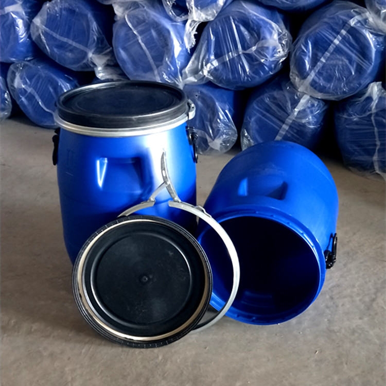 50L法兰塑料桶50升抱箍桶祥合制造商,大口蓝色50公斤塑料桶带提手抠手,50kg法兰塑料桶包装,颜色蓝桶黑盖,具有密封性能好、耐冲击、防腐蚀、耐高温、耐低温特点。防泄漏性、硅胶密封圈,不会渗漏,使你的产品受到重重保护。材质HDPE、桶盖材料、蓝桶黑盖、规格370*370*580mm/产品主要技术指标:密封试验:不渗漏。液压实验:不渗漏,不破裂。跌落试验:跌落高度3米,不破裂。堆码试验。