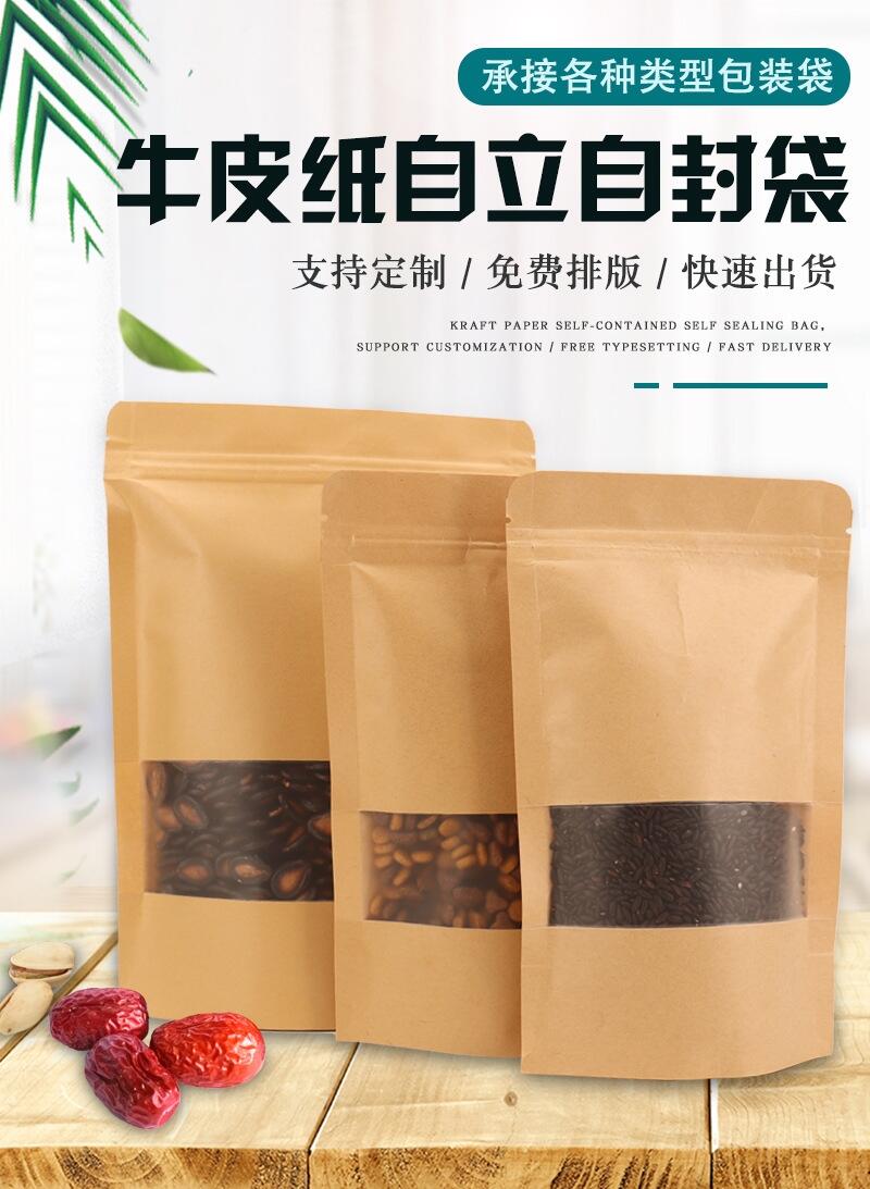 茶叶袋牛皮纸自封袋红枣食品包装袋干果类密封袋自立开窗牛皮纸袋