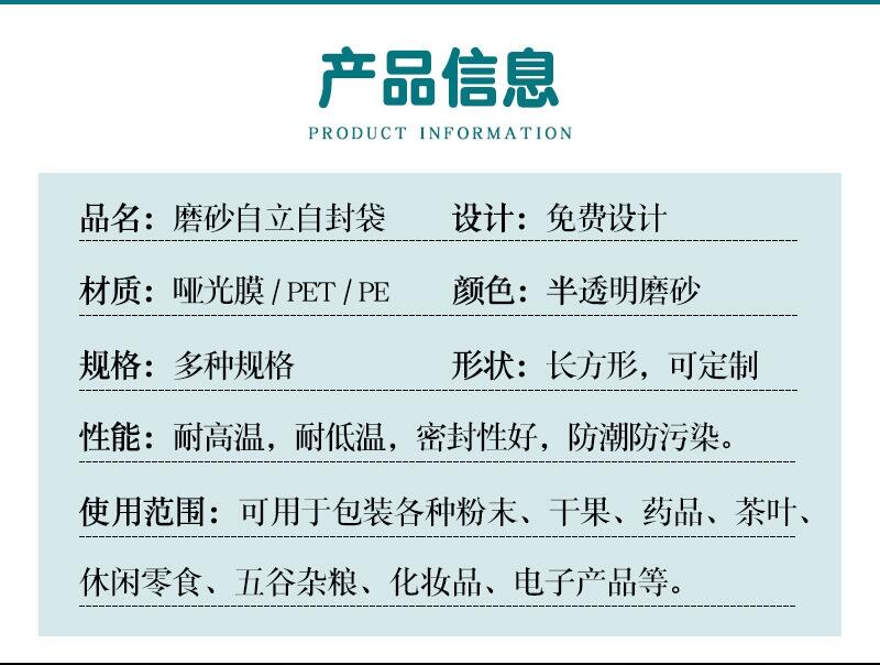 厂家直销磨砂哑光自立自封袋食品封口袋塑料密封包装袋定制自立袋