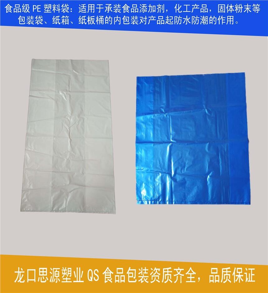 塑料袋颜色分为:透明色、白色、蓝色、黑色,主要用于25公斤包装袋或吨袋的内衬。产品可适用于包装粉状,粒状,片状,块状物料。如:精细化工,工程塑料,食品添加剂,医用添加剂,干粉建材;饲料添加剂;精细矿物 ;纳米材料等行业,同时避免产品粉末外泄。全新料产品符合食品卫生要求,所含微细杂质少,公司取得QS食品包装生产许可证,可为客户提供官方检测报告和食品级生产许可证,SGS、微生物、塑化剂等所含成份检测等。