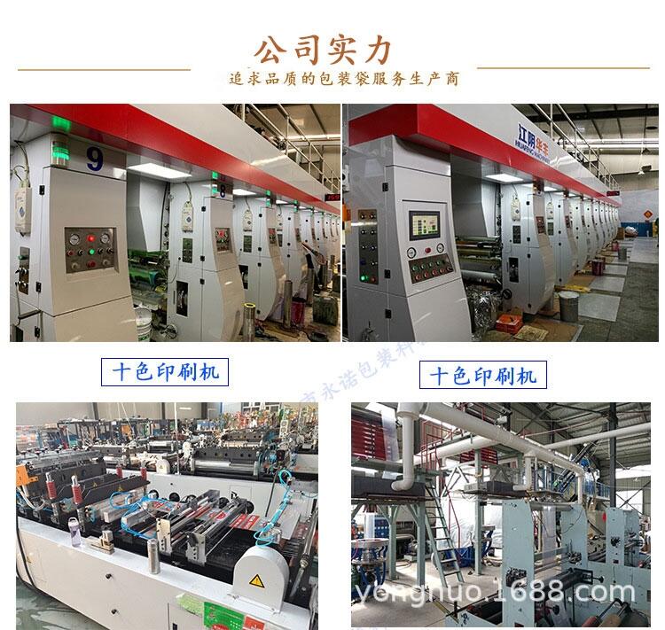 山东省诸城市永诺包装科技有限公司,专注制袋10年,产品覆盖食品、农业、服装、养殖业、五金、机电等各个领域,为众多国内外客户定做生产包装袋,10年来,我们秉承品质为先、以诚取信的理念,严格把控产品质量,公司拥有先进的彩印、制袋流水线,主要生产塑料食品袋;真空包装袋;服装包装袋;高温蒸煮袋;铝箔袋;出口包装袋;自立自封袋;大米包装袋;米砖袋;冷冻食品袋;纸箱内膜袋;PE袋等。 欢迎各界朋友莅临参观、指导和业务洽谈!
