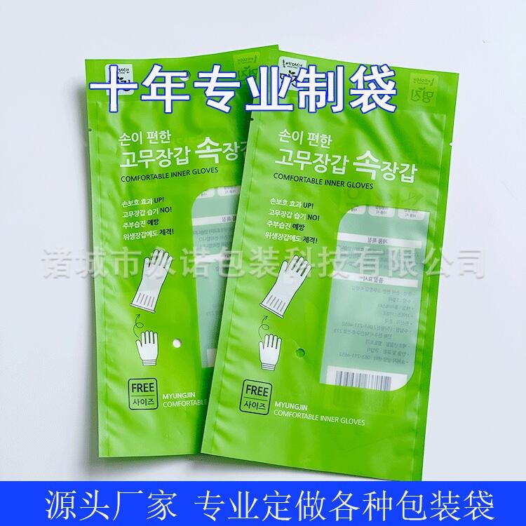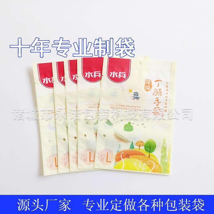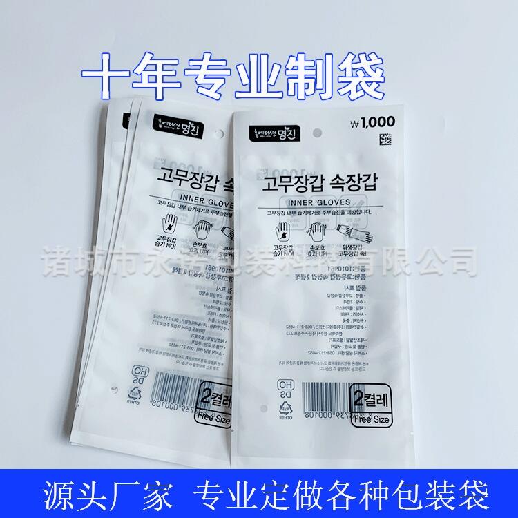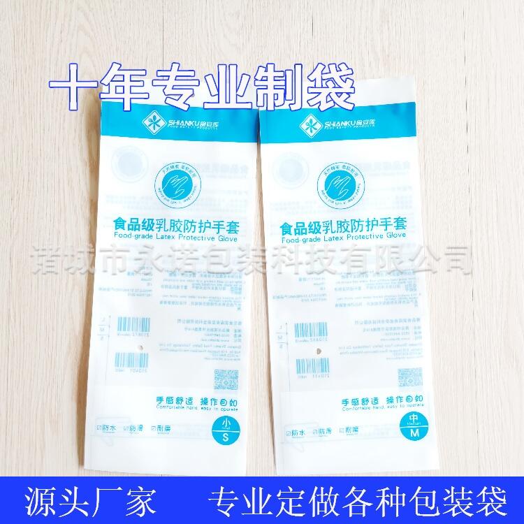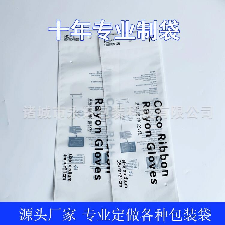 乳胶防护手套包装袋 出口韩版手套自封袋带挂孔 可加印logo
