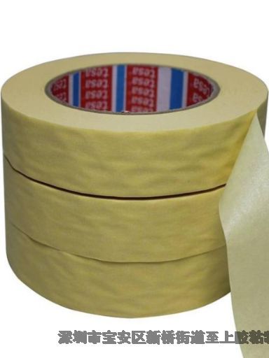 轻度皱纹纸胶带,初粘性及依附曲面能力强,适用于普通遮蔽,车身遮蔽(尤其是80℃烤漆遮蔽),包装等用途