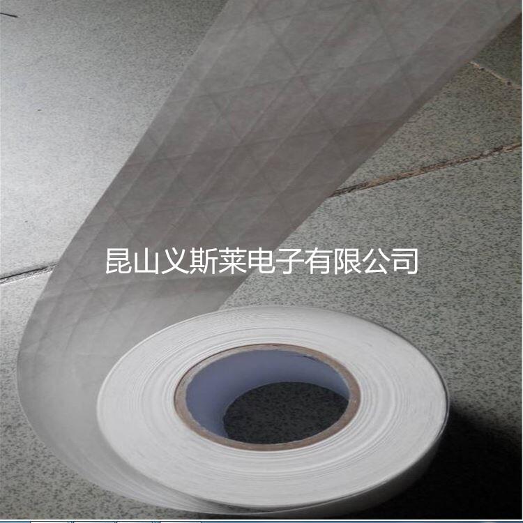 该防粘胶带用于双面胶涂布工艺过程,当双面长宁区3M4930|;替代品 蛇皮胶带长宁区3M4930|;替代品 蛇皮胶带胶带从涂布机被牵引出来时需要用辊轮导出,如果不对引导辊表面进行特殊处理,粘胶将会与辊轮粘连并影响生产及胶带品质。通常会用低表面能的材料包覆该辊的表面,防止粘连的发生。此特种单面防滑胶带是专门为这一应用而设计,它一面涂有耐久性好的粘合剂可以牢固粘贴于导出辊表面,另一面为特种低表面能橡胶,可以有效防止胶粘剂对其的粘接作用。