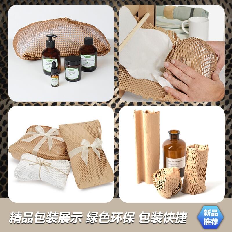 1.蜂窝缓冲包装纸是将一卷蜂窝状的牛皮纸,经拉伸展开后,呈起角蜂窝单元,层叠成一个立体蜂窝衬垫,使被包裹物不易抖漏及刮擦起到很好的缓冲防震,防刮效果。为客户带来更好的客户体验。