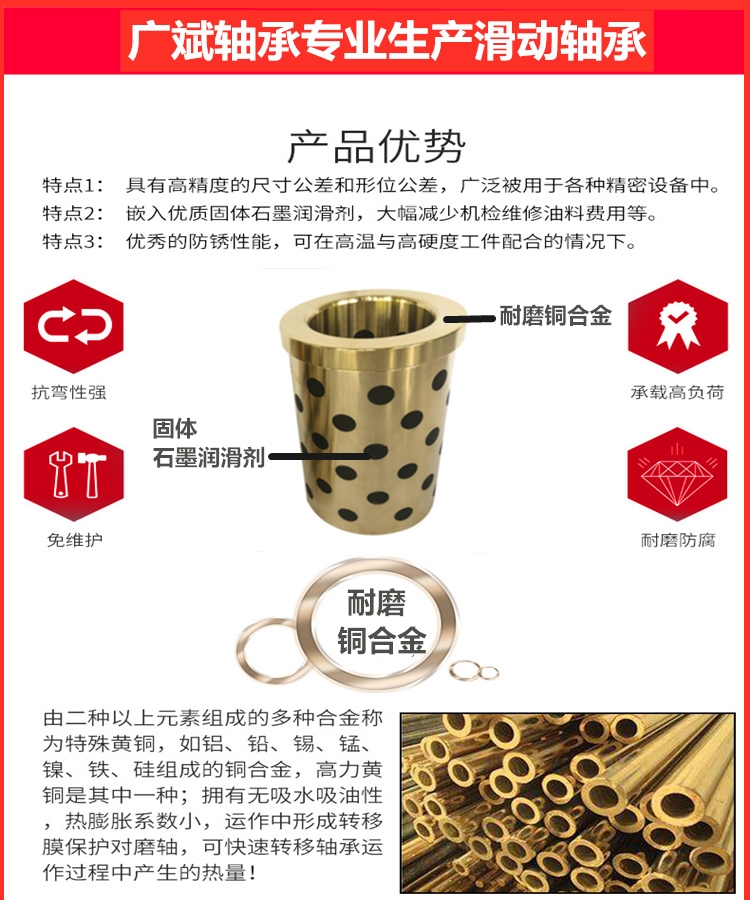 自润滑镶石墨铜套固体润滑无油轴承衬套