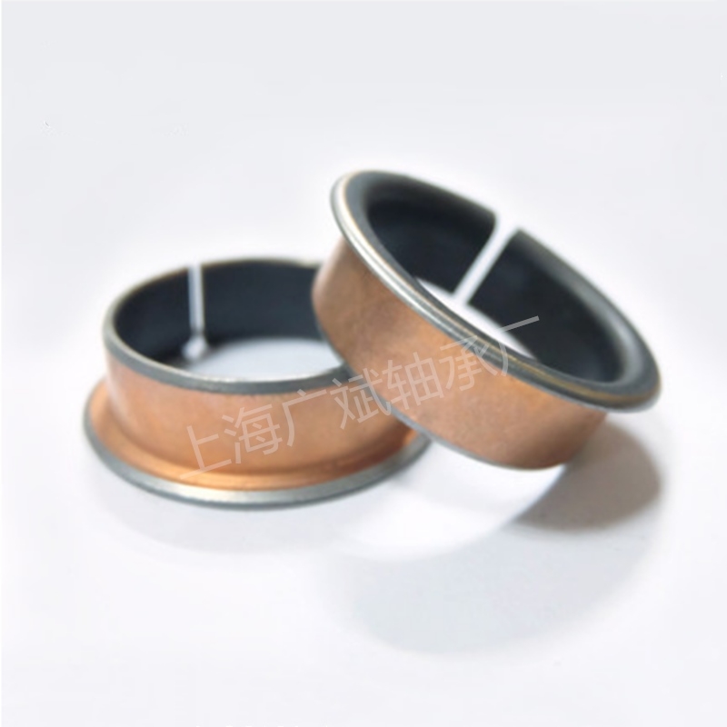 SF-1自润无油衬套厂家 翻边卷制衬套加工滑动轴承厂家,以低碳钢为基板,中间烧结球形多孔铜粉层,表面扎制以PTFE 为主的耐磨润滑材料作为轴承工作层,这种材料具有优异的机械承载能力,中间铜粉层不但可以及时传递轴承运行过程中产生的热量,同时也提高了塑料层与基板的结合强度。PTFE 设计适用于完全干摩擦状态,并根据润滑情况、摩擦系数和耐久性要求开发了多种材料。