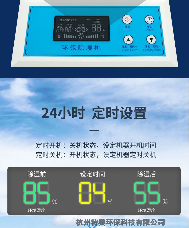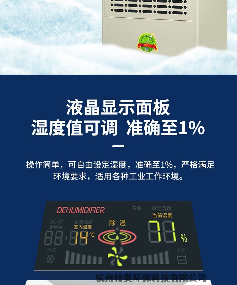 除湿量: 240升/天 适用面积:300-400m2/层高2.6 m~3m