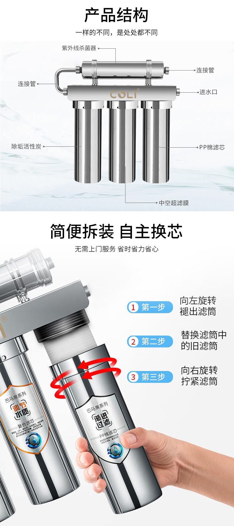 科淋商用防垢阻垢大通量净水器不锈钢外壳,可选配uv杀菌